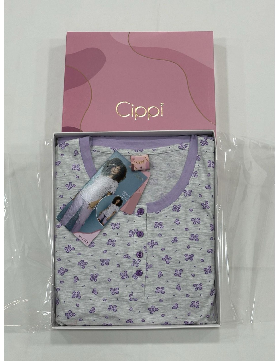 Pigiama donna tris a manica corta in cotone CIPPI