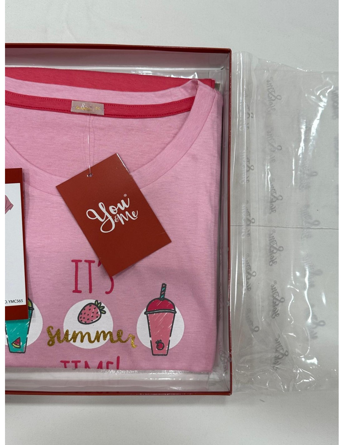 Comfort e stile si incontrano nel pigiama donna a manica corta YOU&ME! Realizzato in 100% cotone, questo pigiama è pensato per chi ama sentirsi comoda senza rinunciare a un tocco di colore e freschezza. Perfetto per le notti estive e i momenti di relax a casa.